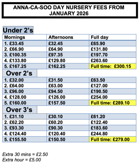 Our funding and fee options cover all consumables, apart from the 3-4 year funding. We try to make sure that our sessions are accessible to all, that's why we try to only charge a small supplement. This is: